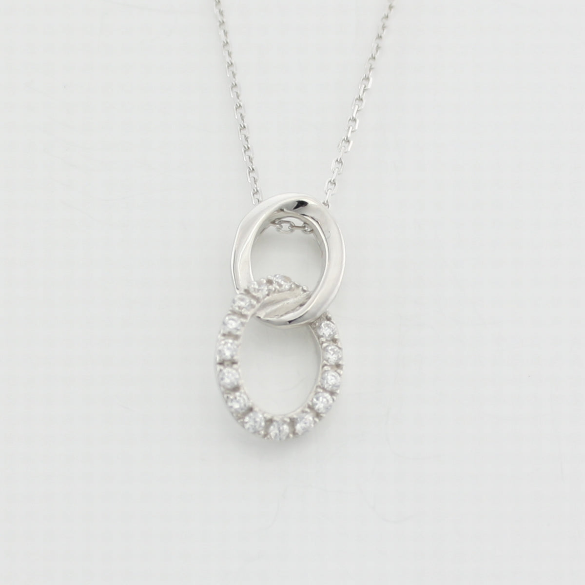 9k white gold interlocking circles pendant with white czJEWELLERY TYPE: Pendant