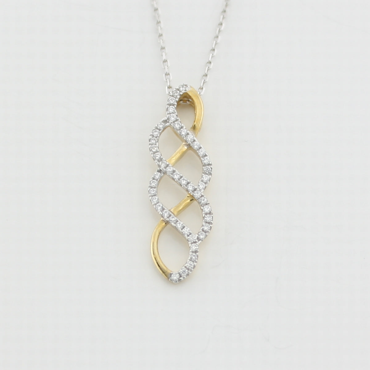 9k yellow gold drop knot pendant with white cz