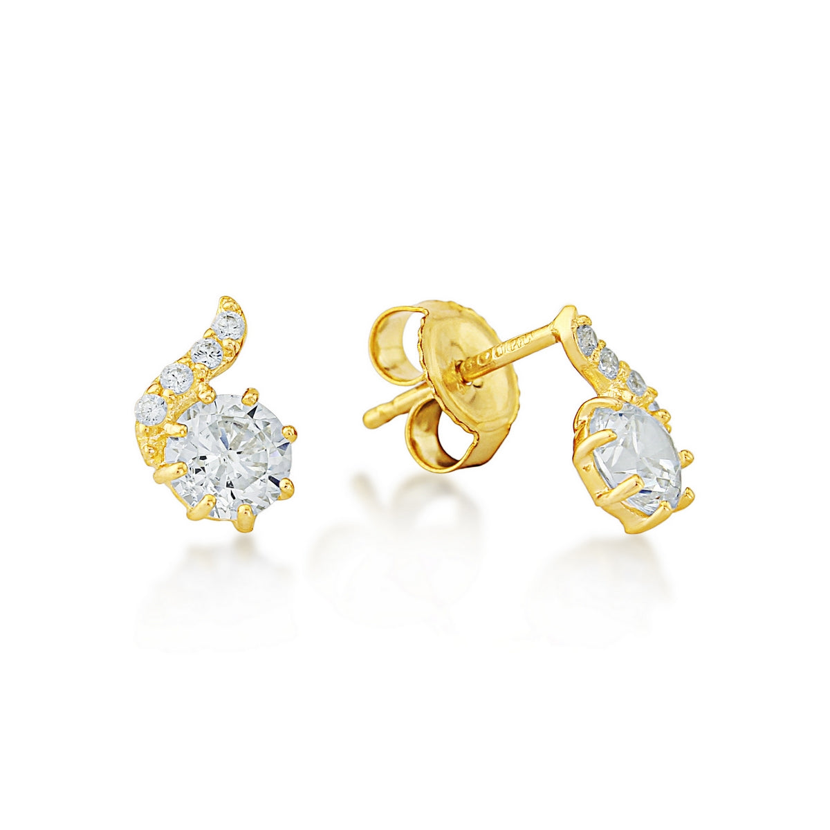 9k yellow gold earring with white cz set in gold stem