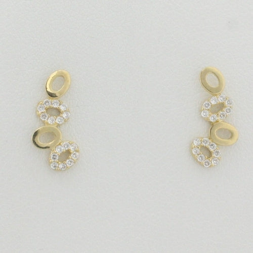 9k yellow gold interlocking oval and circle earrings with white cz