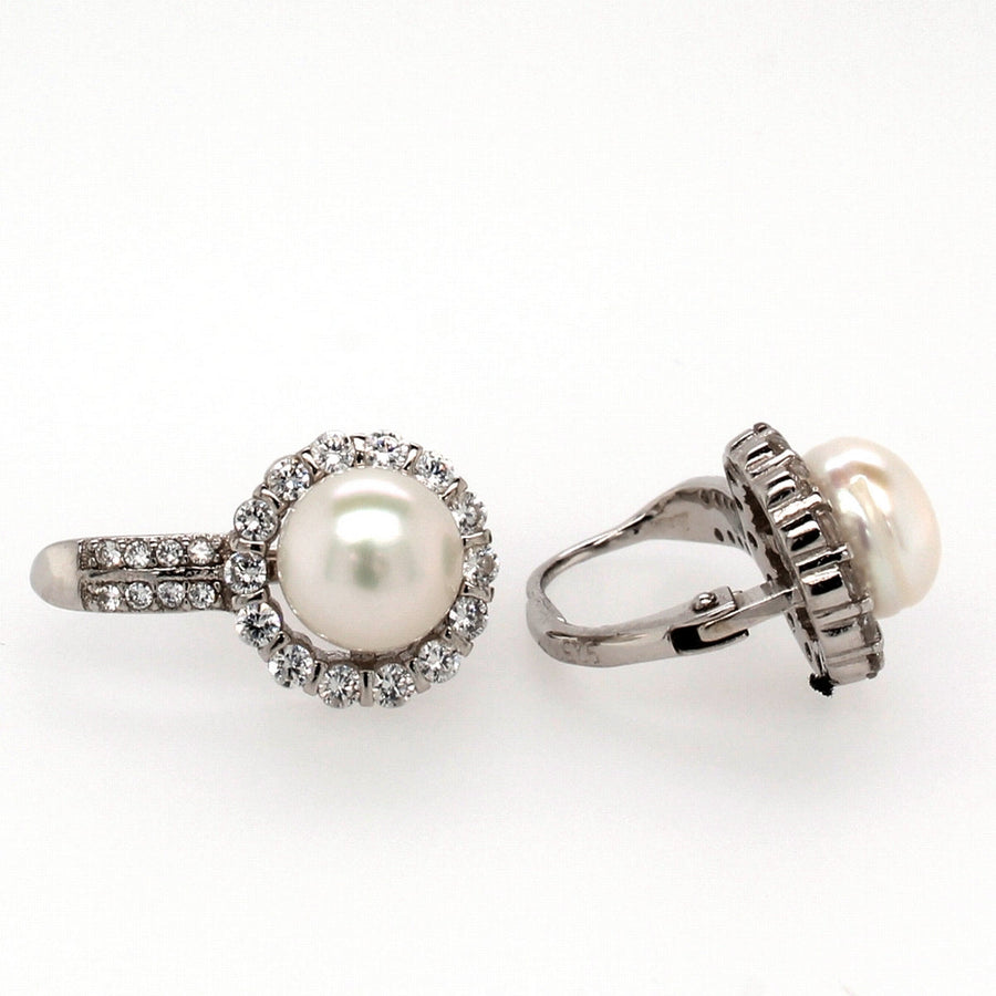 silver freshwater and cz lever back�earrings 7mm