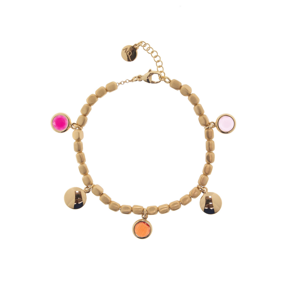 aquaforte mignon multiples dice bracelet with round satin and polished elements and charms with red tones g faceted venitian glass