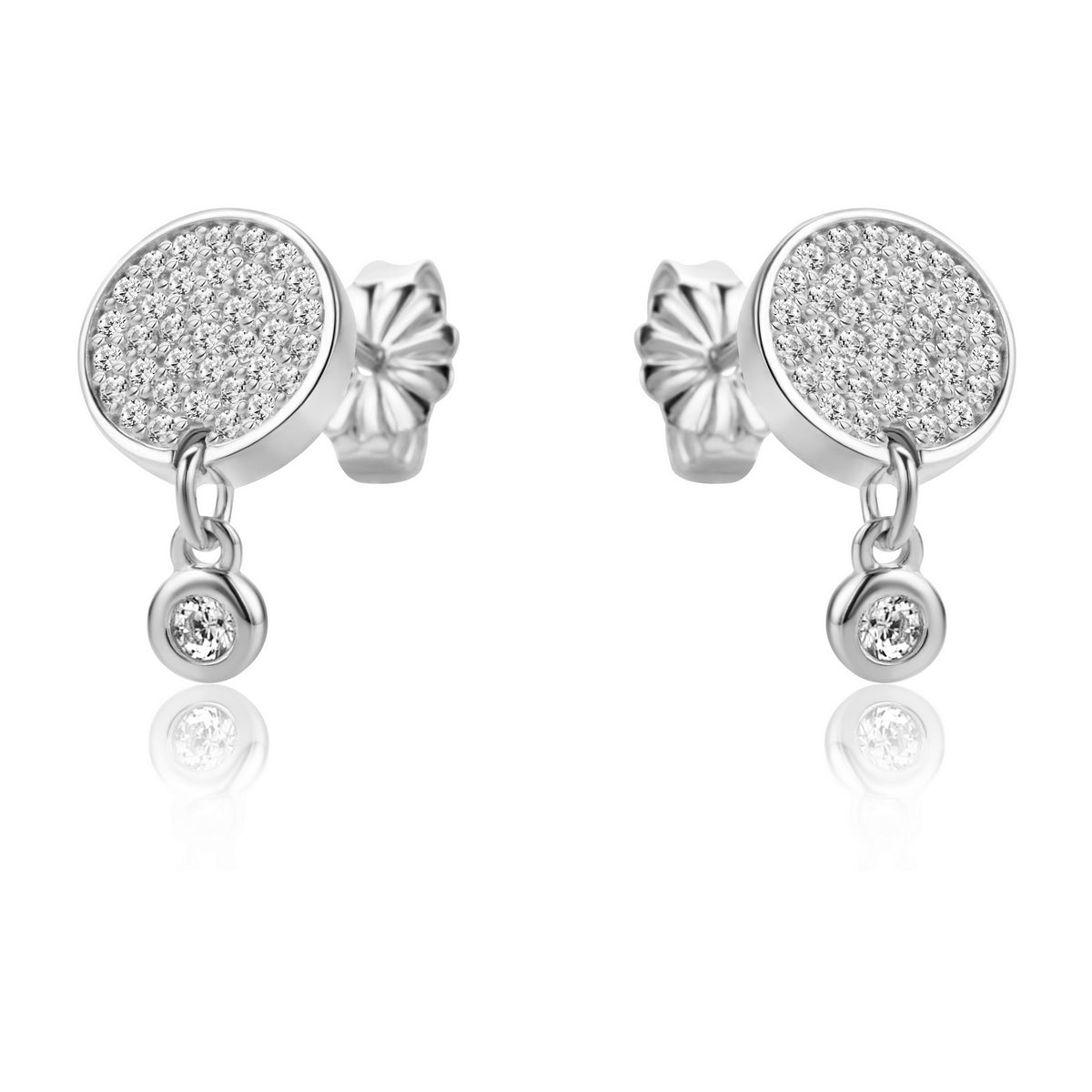 Cubic Zirconia Cluster Earrings with Hanging Stone in Sterling SilverJEWELLERY TYPE: Earrings Stud
