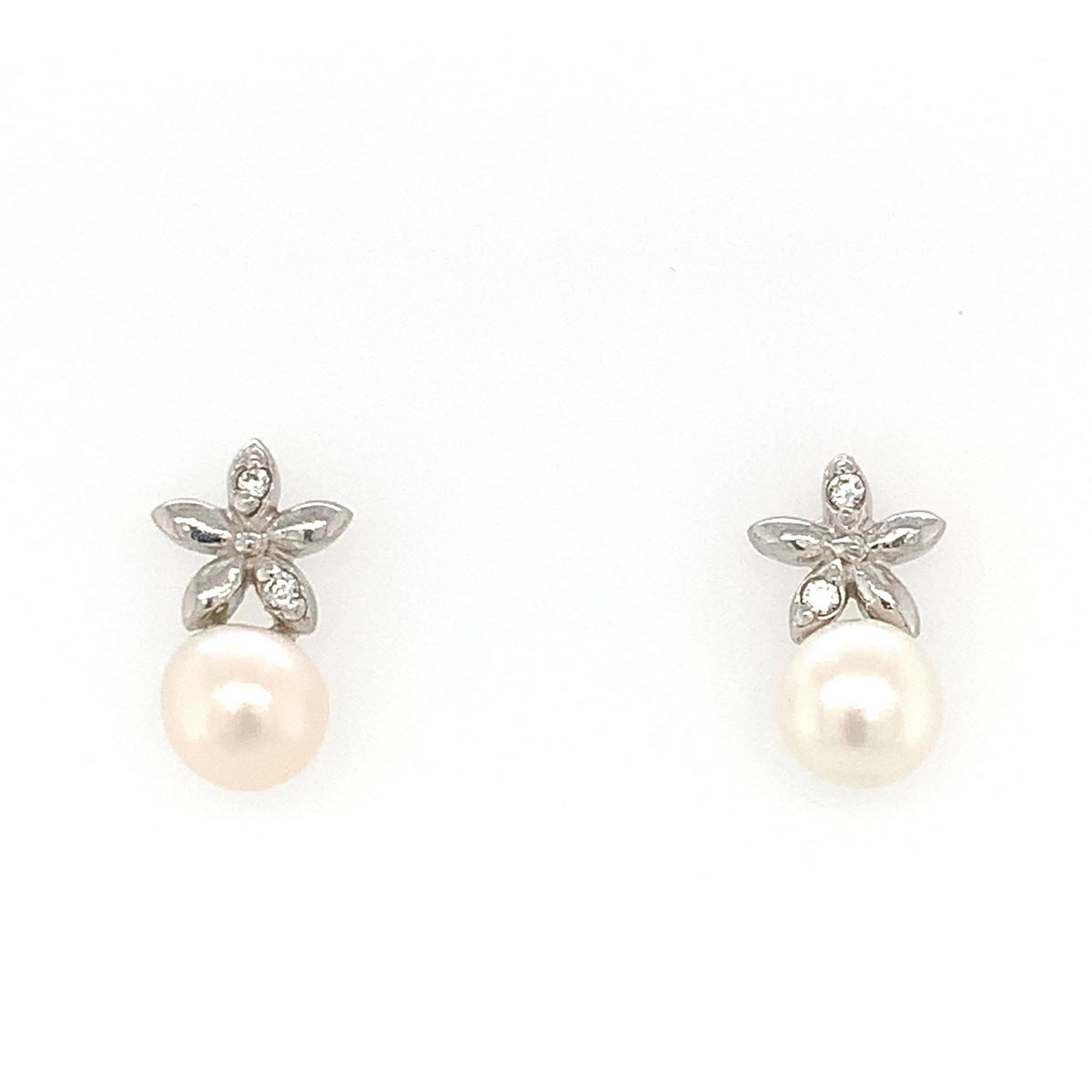 Silver Round Pearl And CZ Set Flower Stud Earrings 7.5mmJEWELLERY TYPE: Earrings Stud