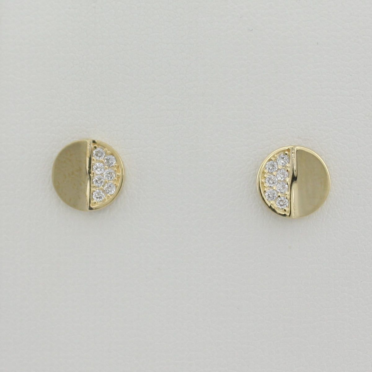 9k yellow gold half polished half white cz stud earringsJEWELLERY TYPE: Earrings Stud