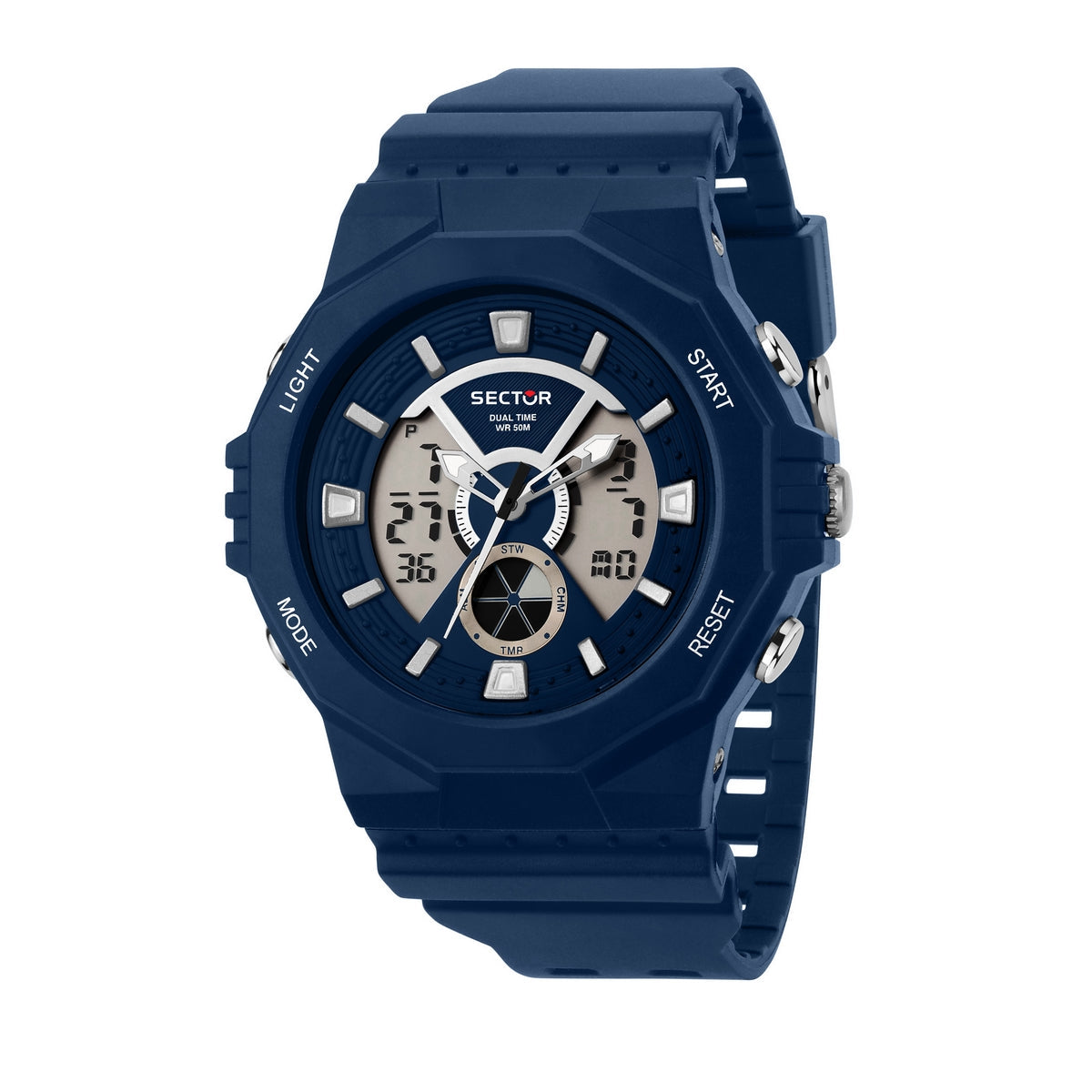 Sector Digital Dual Time, Chime, Stopwatch, Navy Silicone WatchMOVEMENT TYPE: Quartz