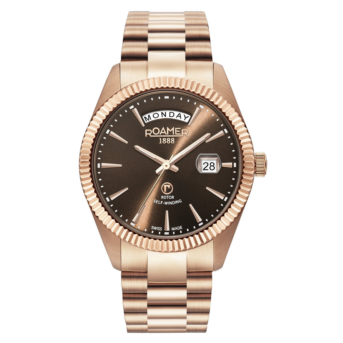 Roamer Primeline Daydate Swiss Made Automatic STP4-13 3 Hands - day & date SS IPRosegold Mechanical Wrist-Watch - Analog - self windingMOVEMENT TYPE: Mechanical