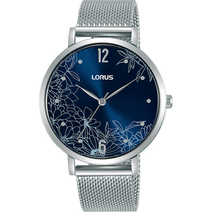 lorus ladies floral pattern dial on stainless steel mesh bracelet watch