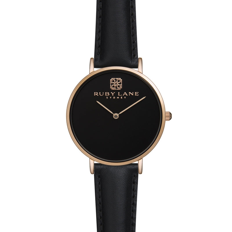 RUBY LANE LIQUID 36MM ROSE BLACK DIAL BLACK STRAP-
