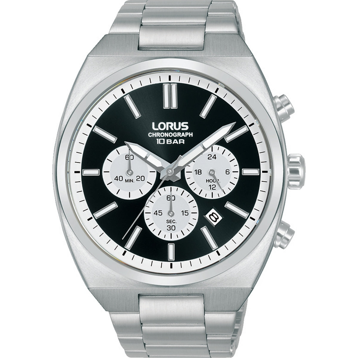 LORUS QUARTZ CHRONOGRAPH GENTS STAINLESS STEEL BLACK DIAL BRACELET WATCHMOVEMENT TYPE: Quartz