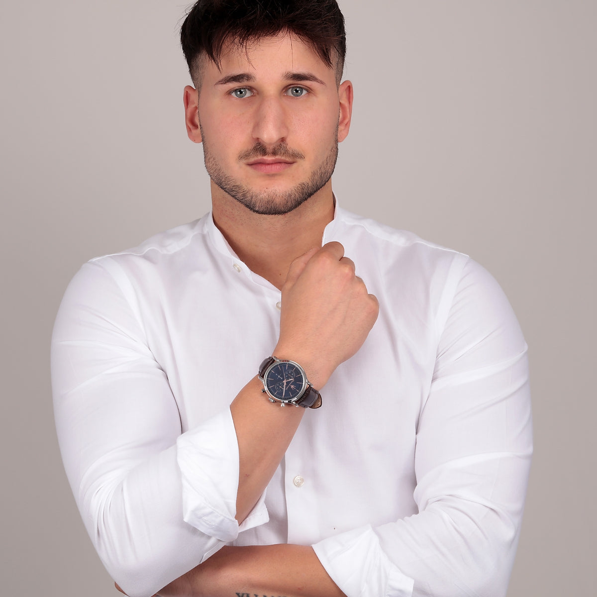 MASERATI EPOCA 42MM CHRONO BLUE DIAL BROWN STRAPMOVEMENT TYPE: Quartz