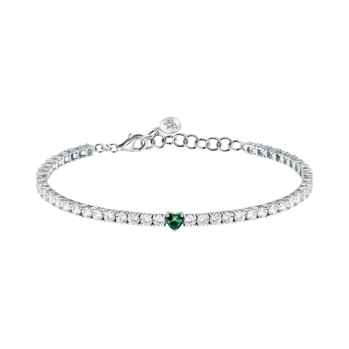 TESORI BRACELET 925 SILVER WHITE CZ WITH EMERALD HEART CENTRE CZ 19CMJEWELLERY TYPE: Bracelet