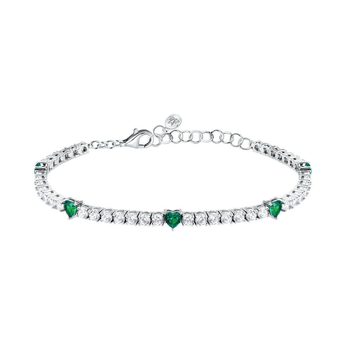 TESORI BRACELET TENNIS HEART SILVER 925 RH GRN+W 15.5+3CMJEWELLERY TYPE: Bracelet