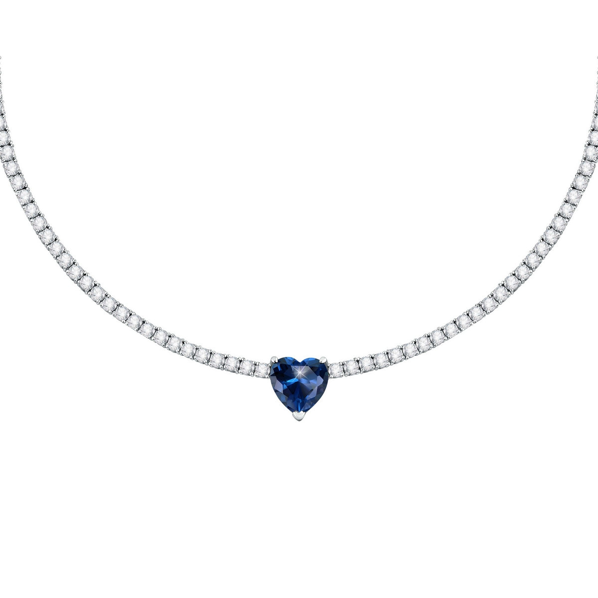 Chiara Ferragni Diamond Heart Necklace 37Cm + 5Cm Tennis With Big Blue Heart Stone-