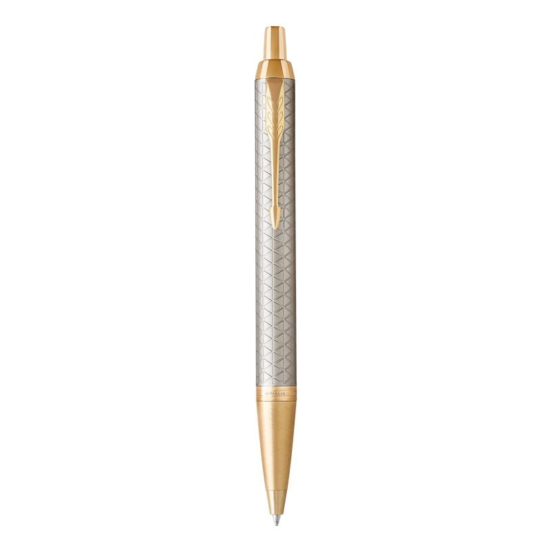 PARKER IM PREMIUM WARM GREY GOLD TRIM BALLPOINTParker IM Ballpoint Pen | Premium Warm Silver | Medium Point Blue Ink | Gift Box
