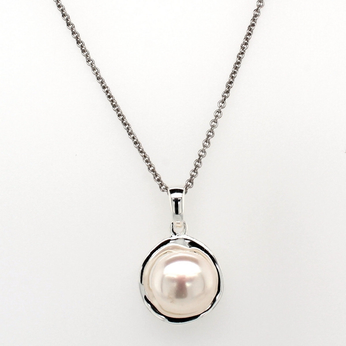 Silver Pearl Plain Round Pendant 9mm on 45cm Chain AJEWELLERY TYPE: Pendant