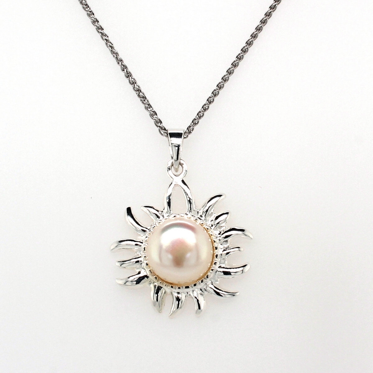 Silver Pearl Sunflower Pendant 8.5mm on 45cm Chain AJEWELLERY TYPE: Pendant