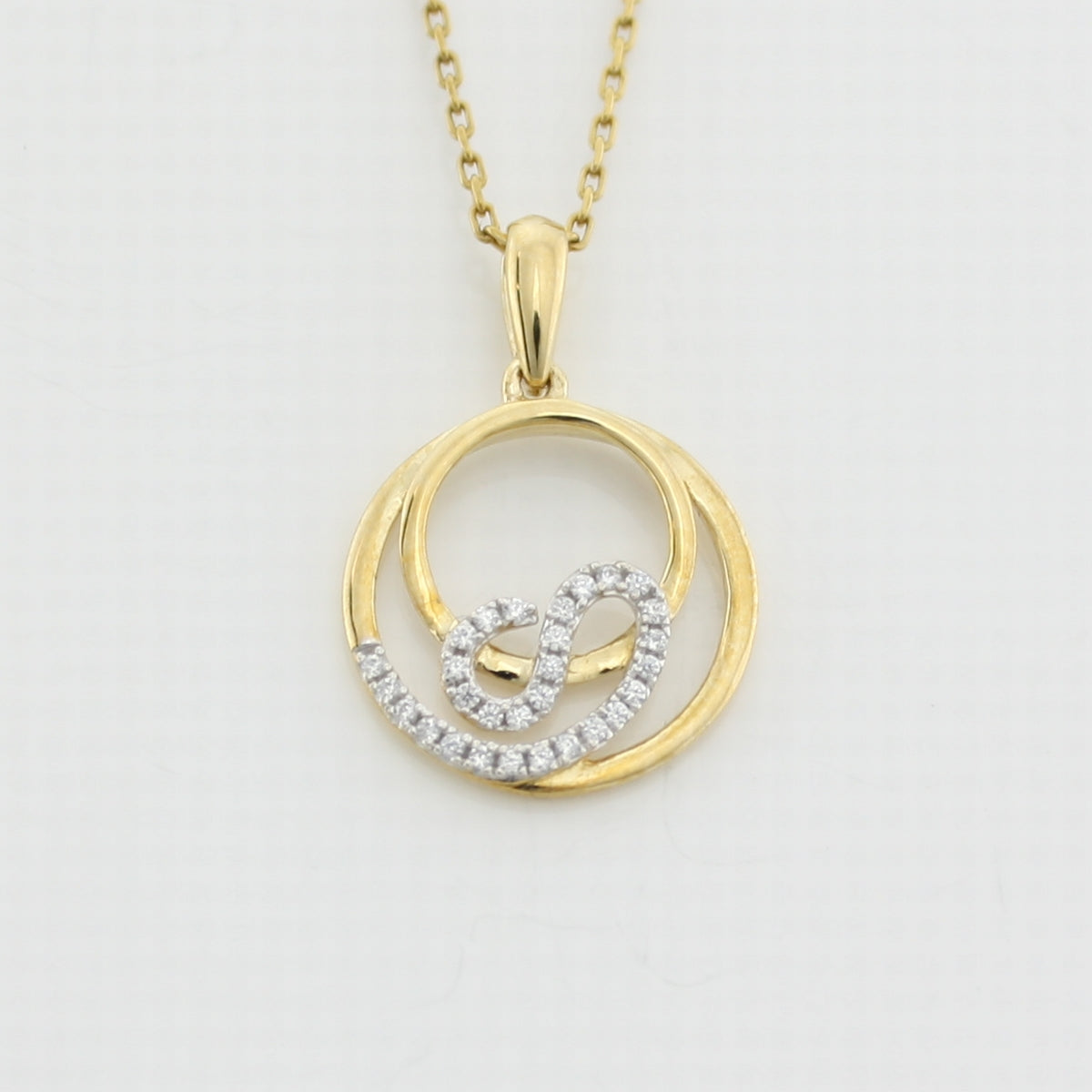 9k yellow gold double circle pendant with white cz swirlJEWELLERY TYPE: Pendant