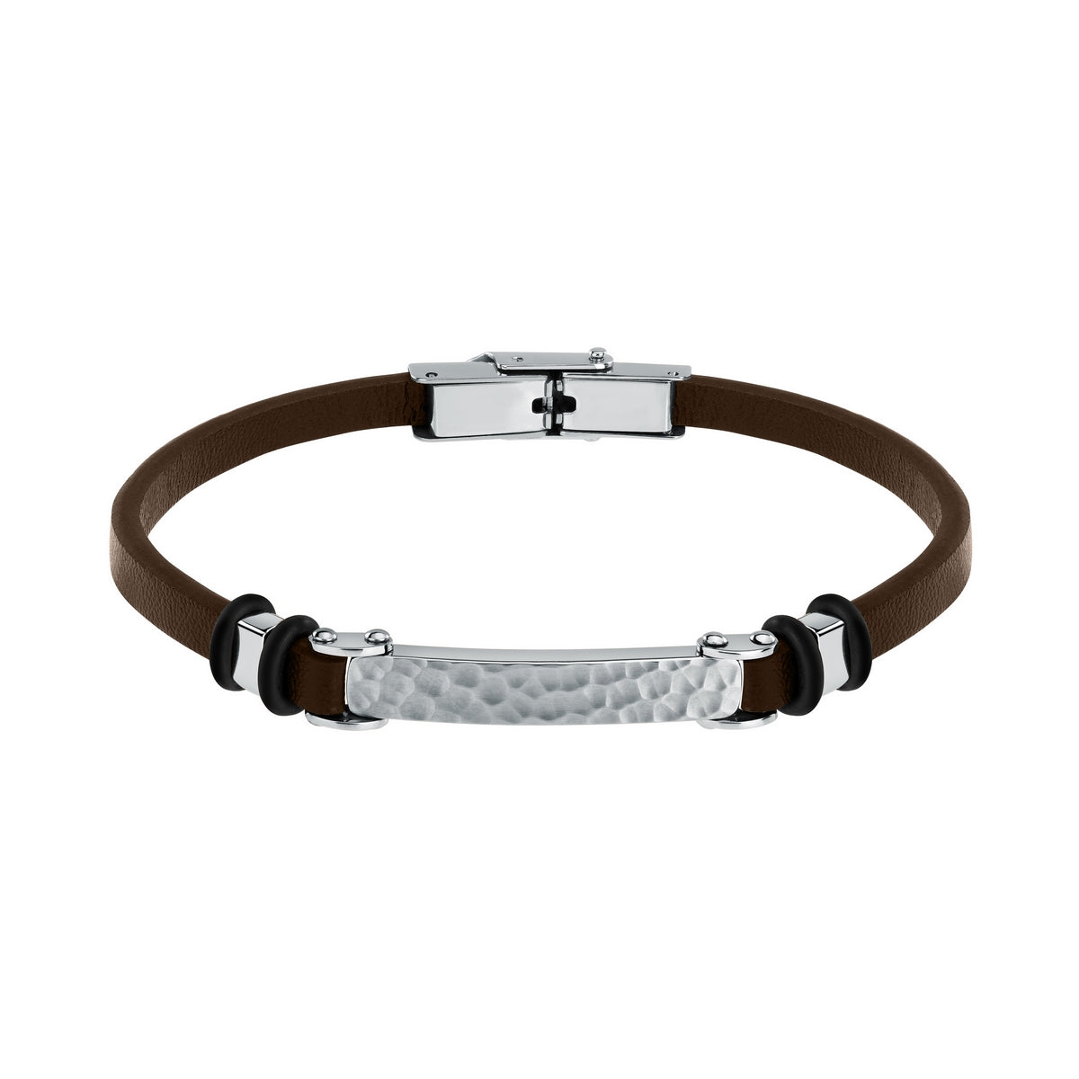 SECTOR JEWELS BANDY Stainless steel bracelet with balck PU leather strap and tag with hammer finishingJEWELLERY TYPE: Bracelet
