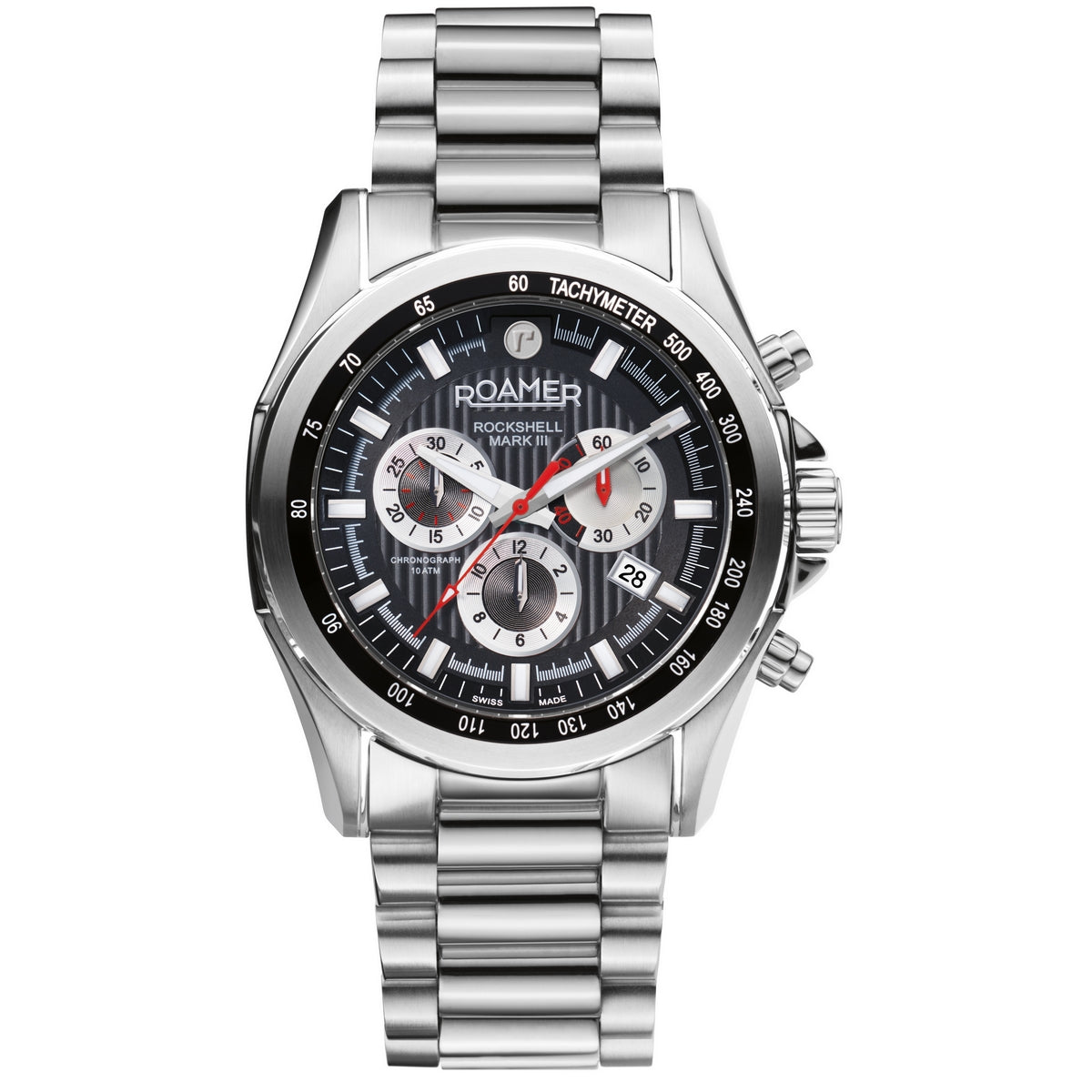 Roamer Rockshell Mark III Chrono Swiss Made Ronda 5030.D Chronograph, date, small second Stainless Steel Quartz Wrist-Watch - Analog - BatteryMOVEMENT TYPE: Quartz