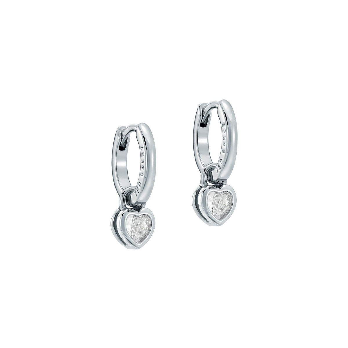 TED BAKER HARPER: Mini Crystal Heart Huggie Earrings Silver Tone Clear Crystal80% Brass, 20% Crystal, 100% Silver Tone Plating