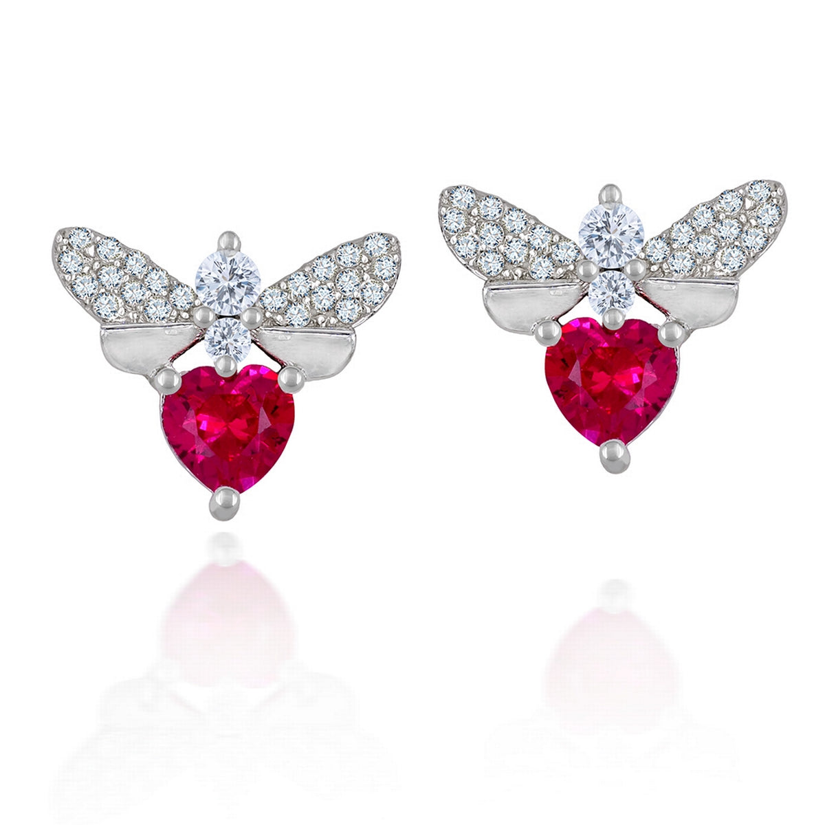real effect stoneset and silver bee with ruby like heart shape stone stud earrings