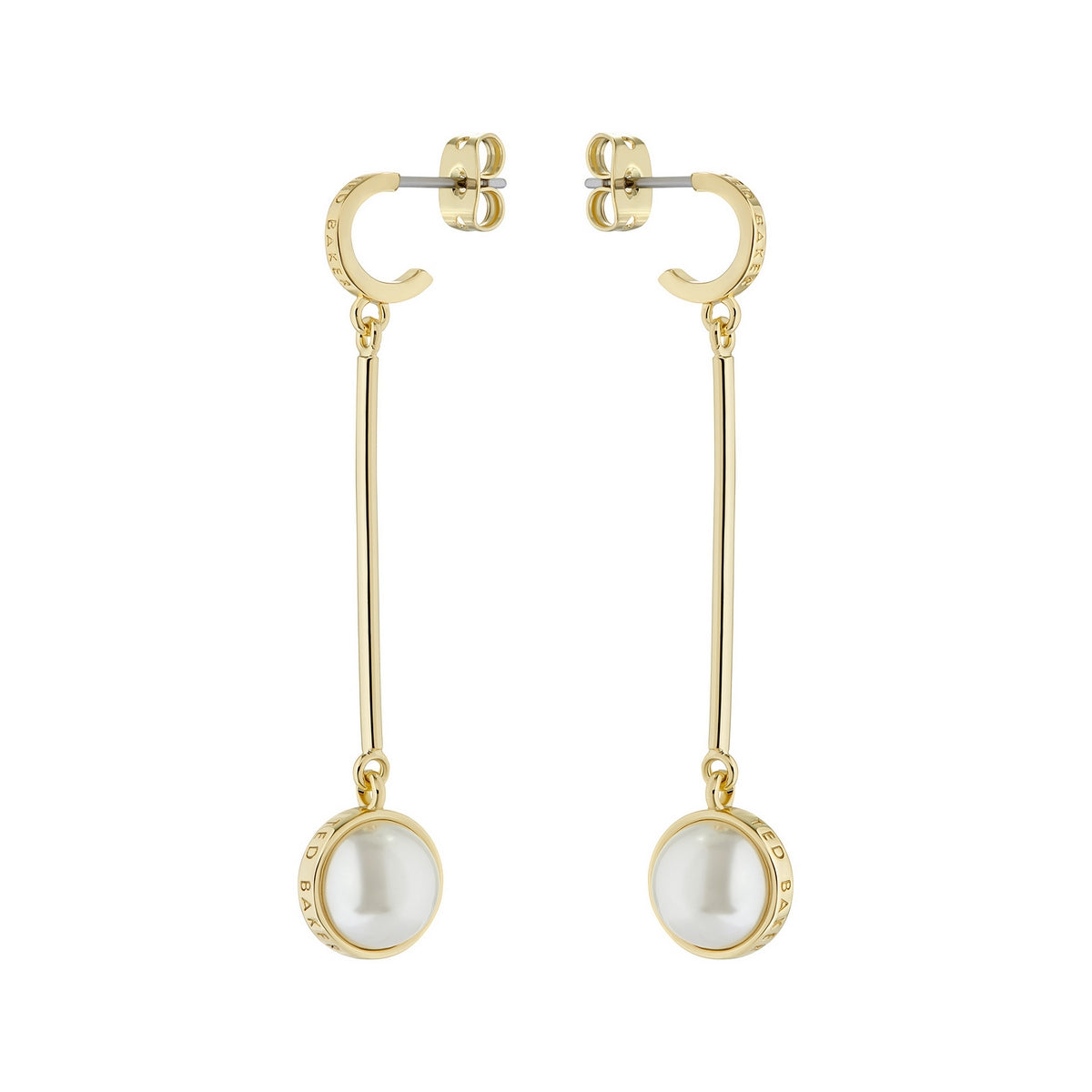 TED BAKER PERLLIE: Logo Pearl Gold Tone Long Drop Earrings88% Brass, 10% Glass, 2% Stainless Steel, 100% Gold Tone Plating