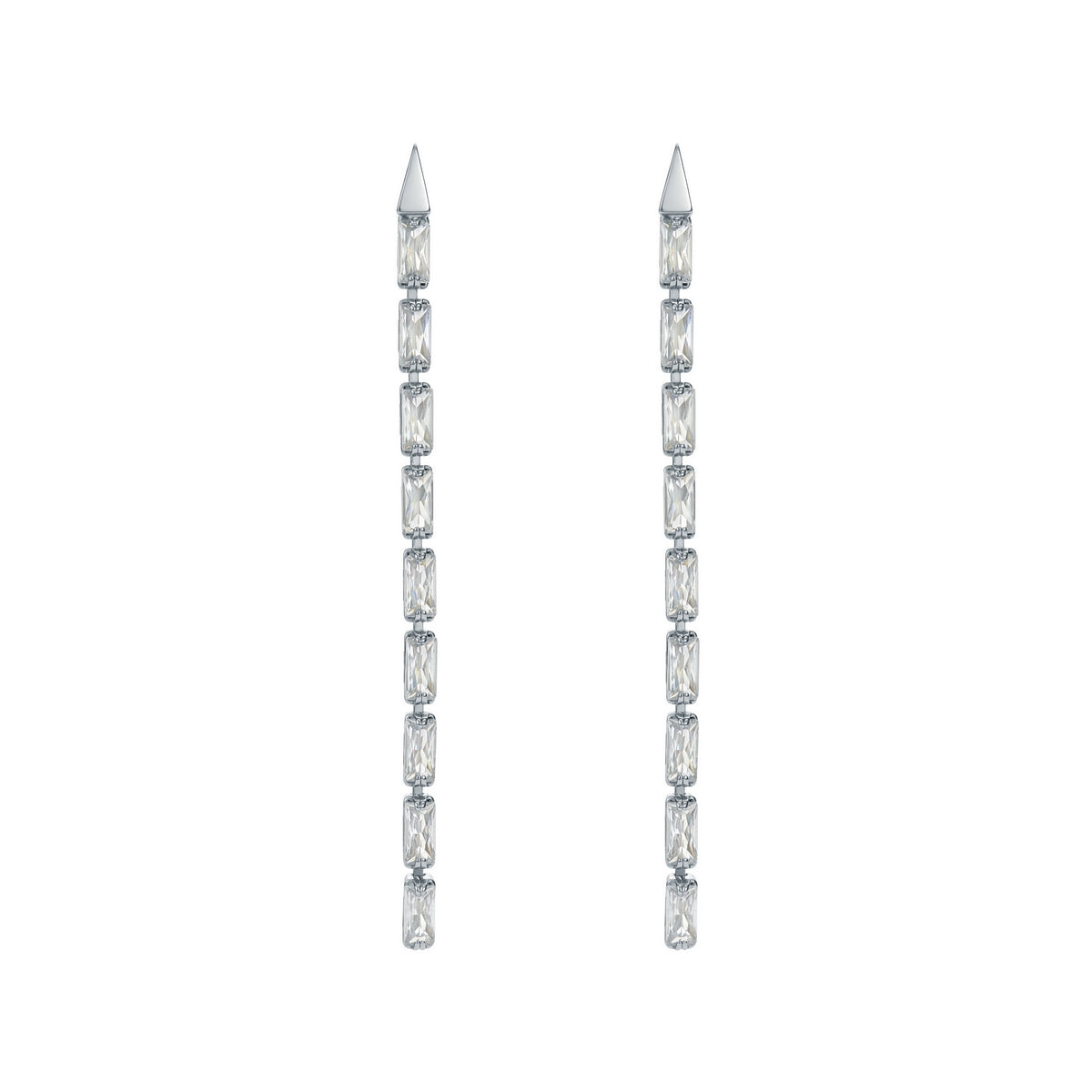 TED BAKER ISALIE: Crystal Baguette Slinky Drop Earrings Silver Tone, Clear Crystal50% Brass, 40% Cubic Zirconia, 10% Stainless Steel, 100% Silver Tone Plating