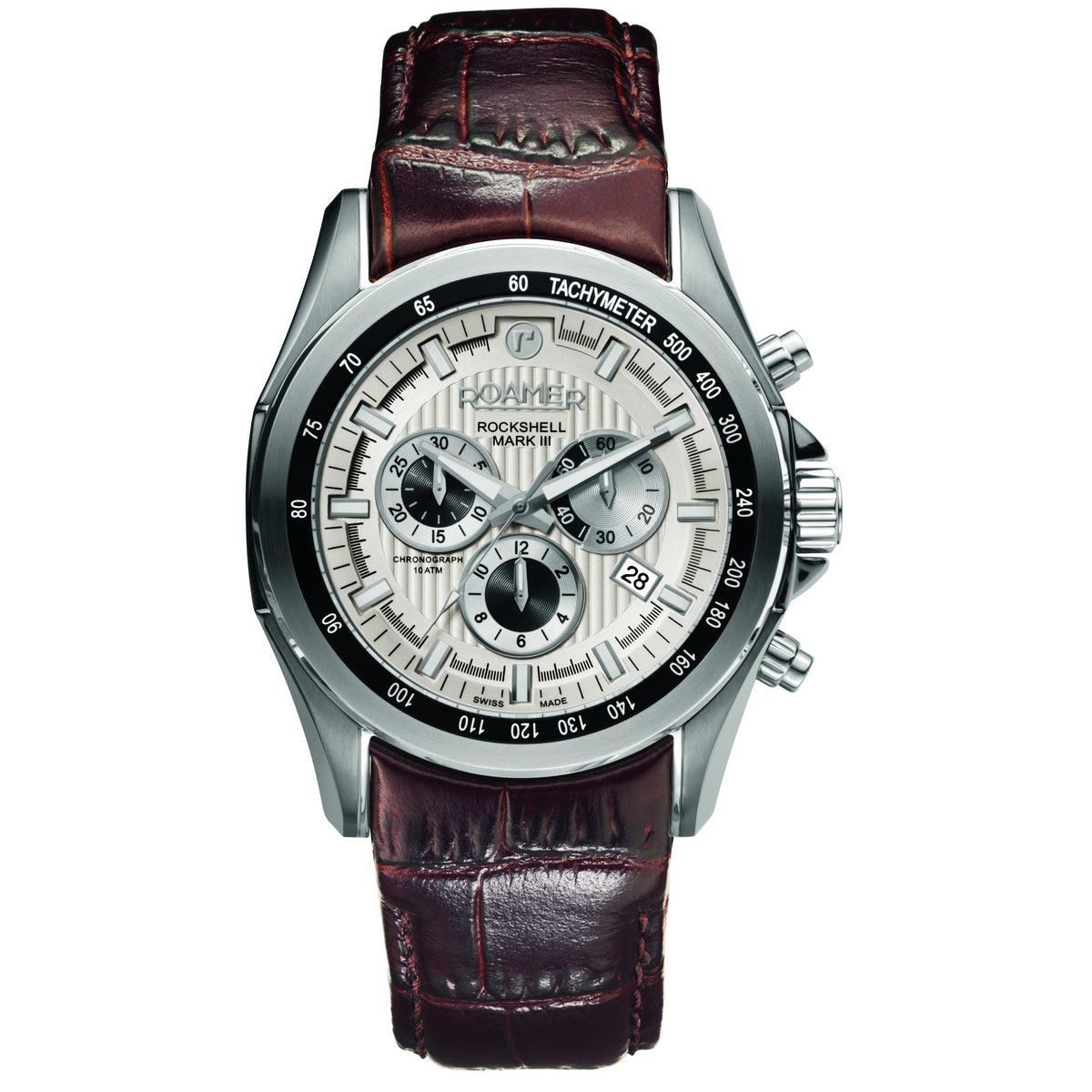 roamer chronograph rockshell mark iii gents quartz stainless steel white dial strap watch