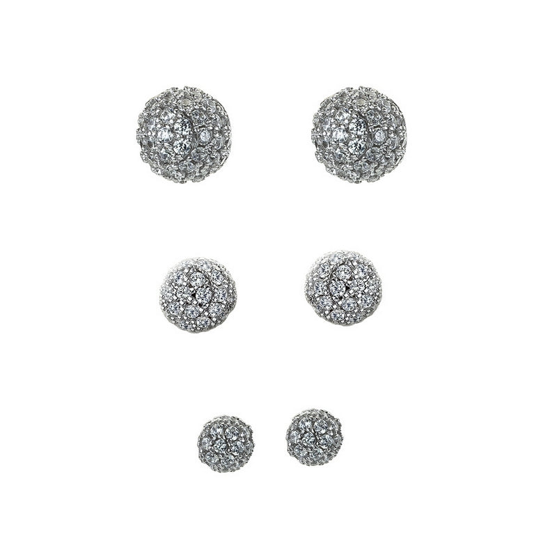 3 pairs different sizes fully stoneset ball studs