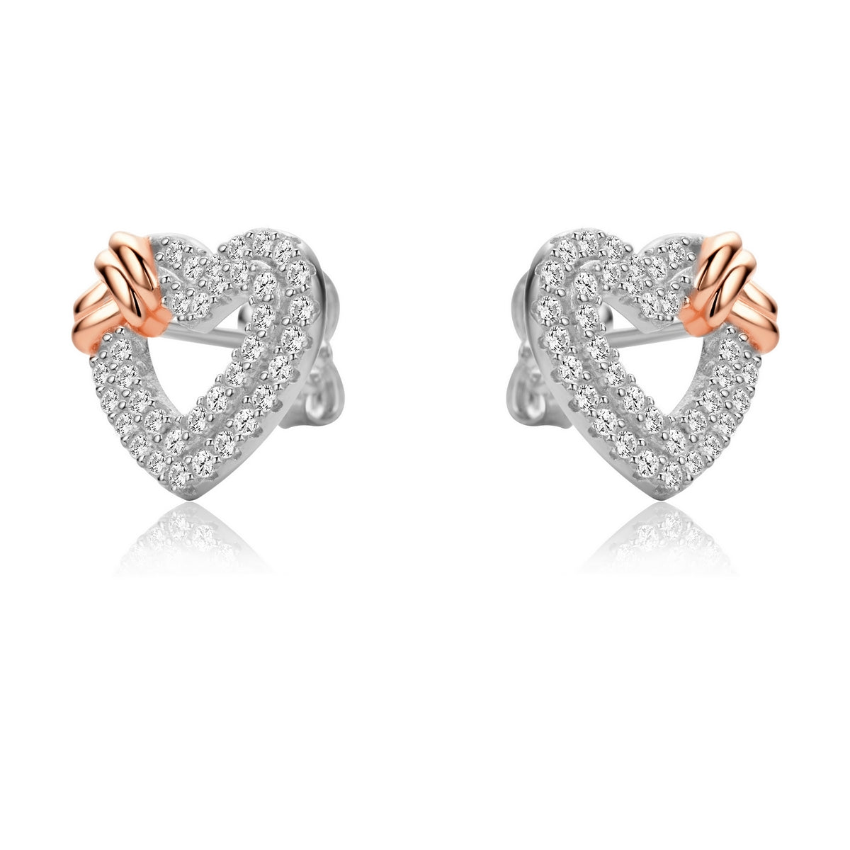 fully stoneset cubic zirconia sterling silver heart outline stud earrings with gold accent
