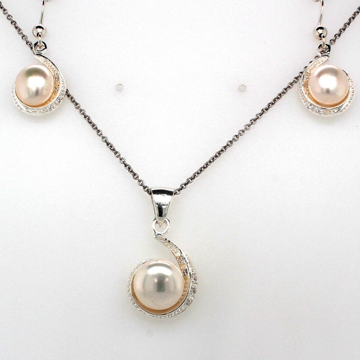 silver pearl mill grain swirl drop earring and pendant set 85mm